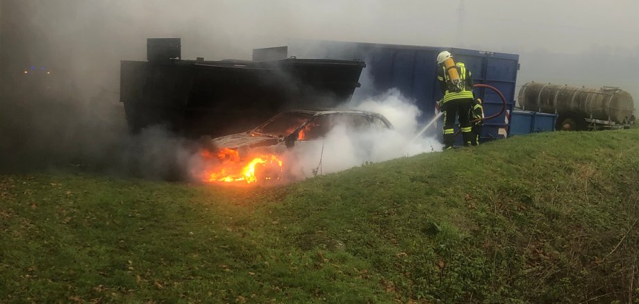 Auf einem Landwirtschaftlichen Betrieb kam es aus bislang ungeklärter Ursache zu einem PKW-Brand, der in der Nähe von mehreren Containern stand.