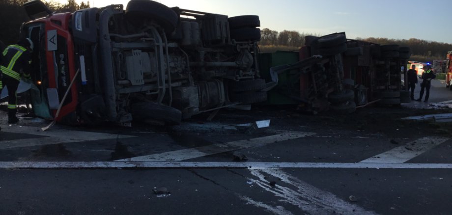 Am Freitagmorgen kam es zu einer Alarmierung der Kräfte auf die Bundesautobahn 2 in Fahrtrichtung Hannover. Auf Höhe km 363 ist es zu einer Kollision zwischen einem PKW und einem LKW gekommen, wobei der LKW auf Grund des Zusammenpralls auf die rechte Fahrzeugseite stürzte. Bei Eintreffen der Rettungskräfte hatten bereits beide Fahrer ihr Fahrzeug eigenständig verlassen. Aufgrund massig auslaufender Betriebsstoffe wurde der Gerätewagen Gefahrgut hinzualarmiert. Die Flüssigkeiten wurden abgebunden und die Einsatzstelle abgesichert.