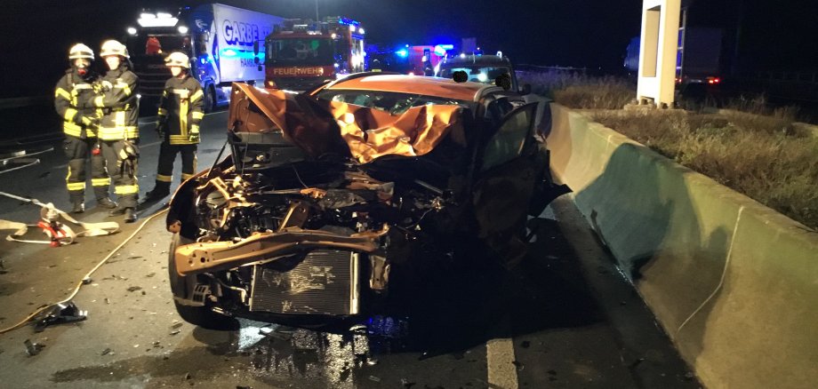 Ein PKW war aus noch ungeklärter Ursache auf einen Sattelzug aufgefahren. Mit dem quer zur Fahrtrichtung stehenden PKW Wrack sind danach noch mehrere Fahrzeuge kollidiert. Insgesamt waren an dem Unfall 5 PKW und der LKW beteiligt. 10 Personen wurden verletzt.