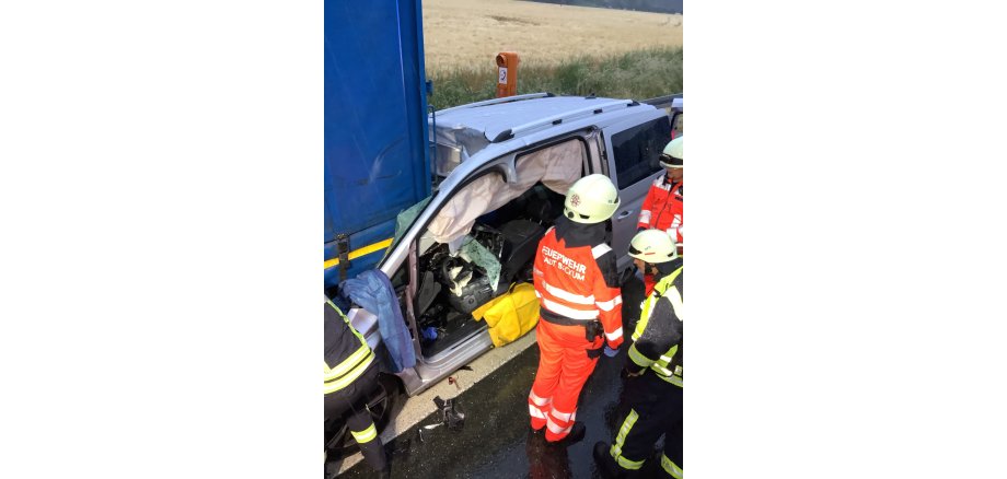 Am frühen Dienstagmorgen kam es auf der A2 in Oelde zu einem schweren Verkehrsunfall, bei dem eine Person in ihrem Fahrzeug eingeklemmt wurde. Ein 62-Jähriger Fahrer eines VW Caddy aus Rheinland-Pfalz, fuhr gegen 4:50 Uhr aus unbekannter Ursache in das Heck eines in den Niederlanden zugelassen Sattelzugs. Dabei schob sich der Caddy bis zur B-Säule unter das Heck des LKW und verkeile sich dort. Der Fahrer des Sattelzugs brachte sein Fahrzeug auf dem Seitenstreifen zum Stillstand. Die Leitstelle Warendorf wurde zunächst durch einen automatisierten Notruf (e-Call) über den Unfall informiert und alarmierte die Kräfte der Feuerwehr Oelde, zwei Rettungswagen und ein Notarzt zur Unfallstelle. Vor Ort stellte sich heraus, dass der Fahrer des Caddys sein Fahrzeug nicht selbstständig verlassen konnte, da Armaturenbrett und Lenkrad durch den Unfall weit ins Fahrzeug gedrückt wurden. Mit hydraulischem Rettungsgerät wurde eine große Seitenöffnung geschaffen, indem die Fahrertür und die B-Säule entfernt wurden. Durch vorsichtiges Absenken des Fahrersitzes konnte der Fahrer schließlich aus seiner misslichen Lage befreit und mit einem Spineboard aus dem Fahrzeug gehoben werden. Trotz des heftigen Aufpralls auf das Heck des LKW, wurde der Fahrer nur mit leichten Verletzungen in das St. Elisabeth Hospital nach Gütersloh gebracht. Für die Maßnahmen an der Unfallstelle wurden zwei Spuren der A2 in Richtung Hannover bis 6:20 Uhr gesperrt. Die Feuerwehr Oelde war mit drei Fahrzeugen und zwölf Kräften im Einsatz.
